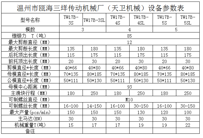 您當前的位置:首頁 / 產品中心 / 三模三沖冷鐓機 / └ TW17B(M10)多工位冷鐓機 / TW17B三模三沖多工位冷鐓機