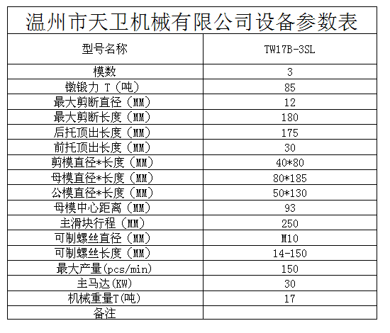 您當前的位置:首頁 / 產品中心 / 三模三沖冷鐓機 / └ TW17B(M10)多工位冷鐓機 / TW17B-3SL全自動多工位冷鐓機