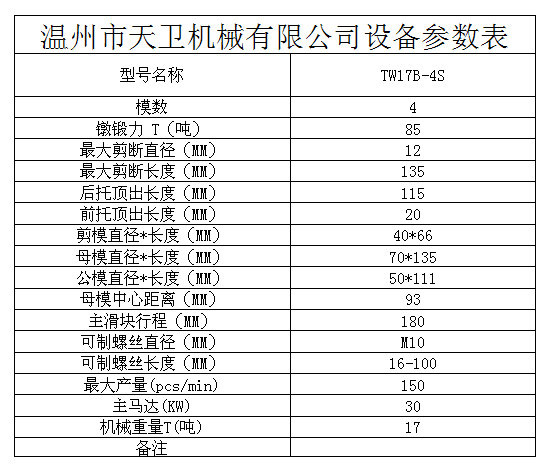 您當前的位置:首頁 / 產(chǎn)品中心 / 四模四沖冷鐓機 / └ TW17B(M10)冷鐓機 / TW17B-4S全自動多工位冷鐓機